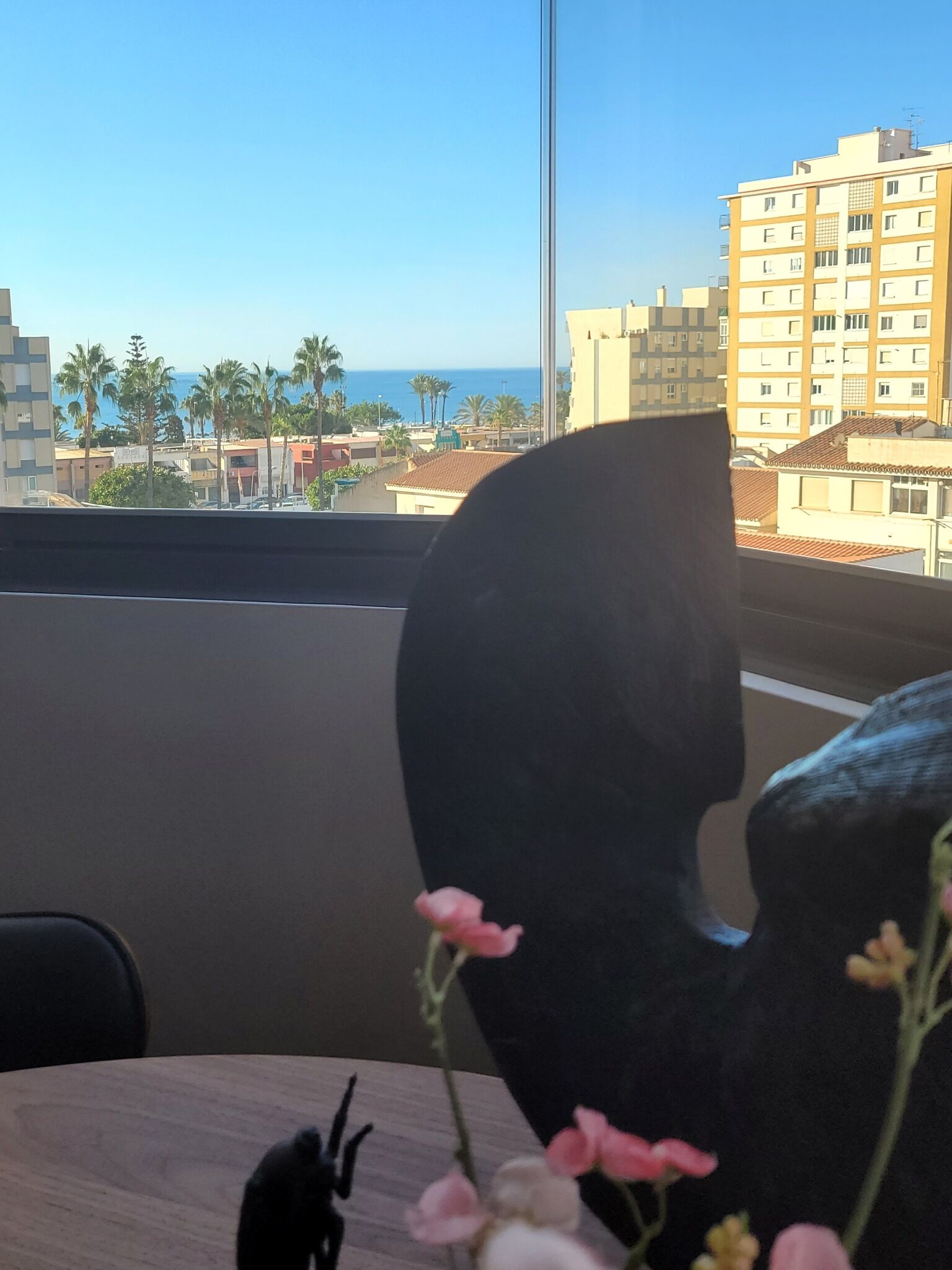 De ramen kunnen volledig open, zodat als het ware, je woonkamer één groot balkon is, met een prachtig uitzicht op de bergen aan de ene kant en uitzicht op zee aan de andere kant.