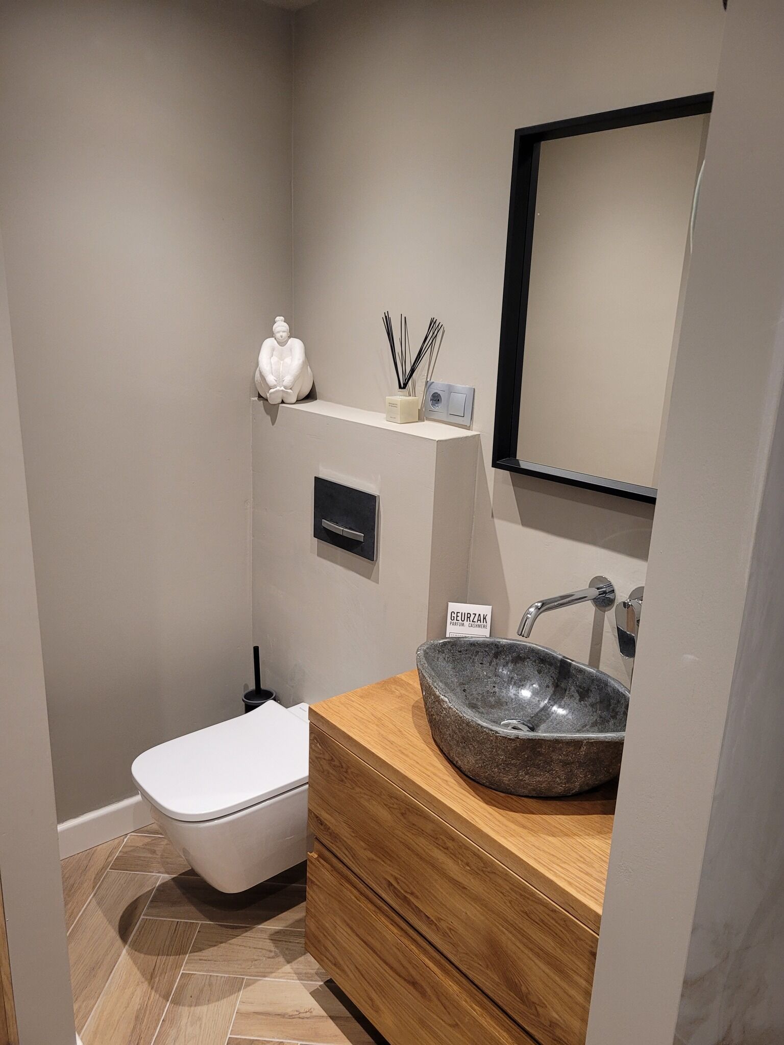 In de badkamer kun je genieten van een heerlijke regendouche en vind je verstopt achter de eikenhouten deuren een wasmachine.